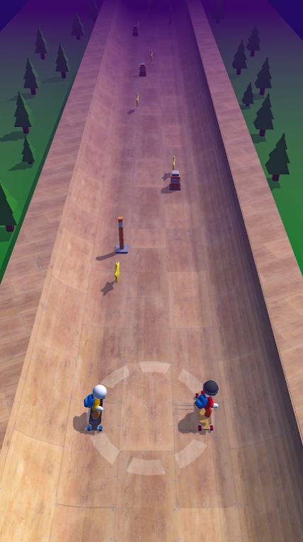 2、通过比赛赢得金币和奖励,解锁新滑板、角色皮肤以及强化技能,提升滑行能力;
