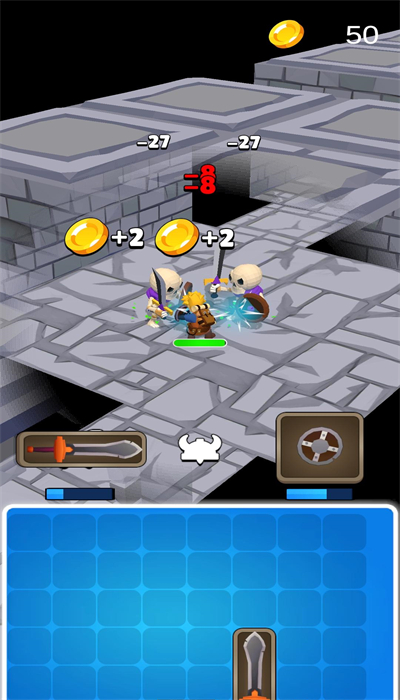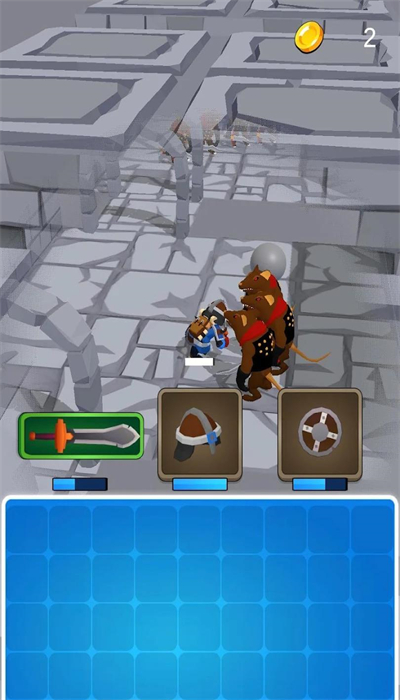 1、玩家扮演勇者深入地牢,通过劫掠怪物获得武器,并在战斗中合并提升战斗力;