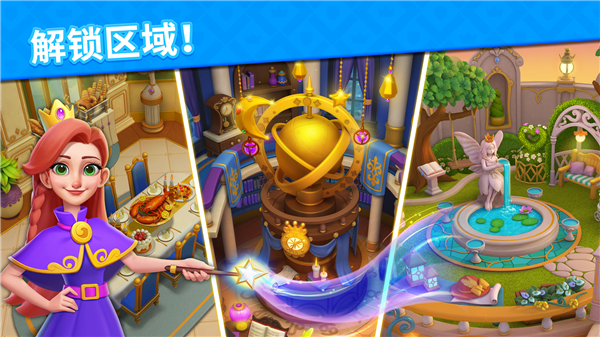 1、玩消泡游戏装点你的家,包括皇家客厅、许愿池、餐厅等!