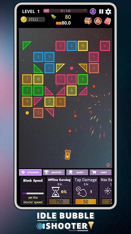 2)简单的手指点击和调整瞄准线控制方式,让你能够轻松消除不同颜色的泡泡,尽情挑战自己的技巧。