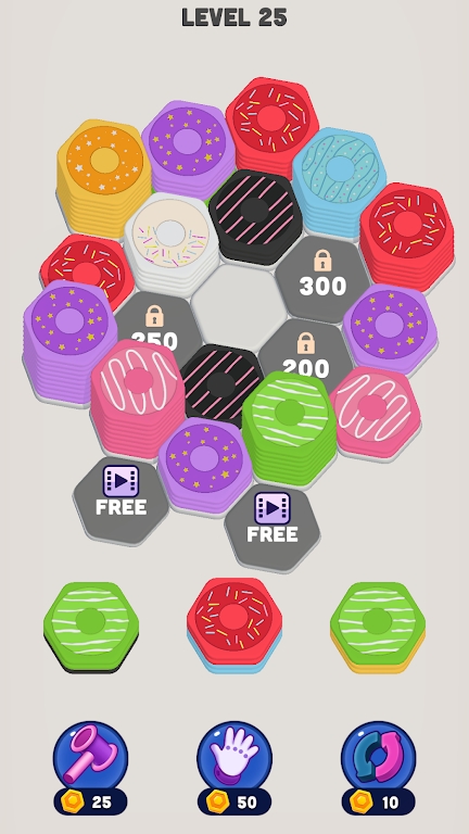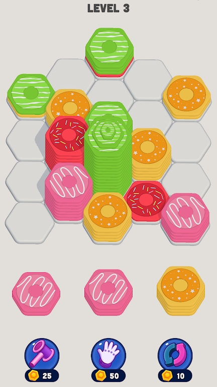 2、这里的加入了甜甜圈的元素,让游戏的趣味性更强了,而且还是六边形的。