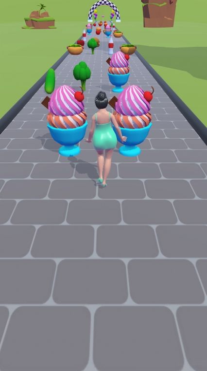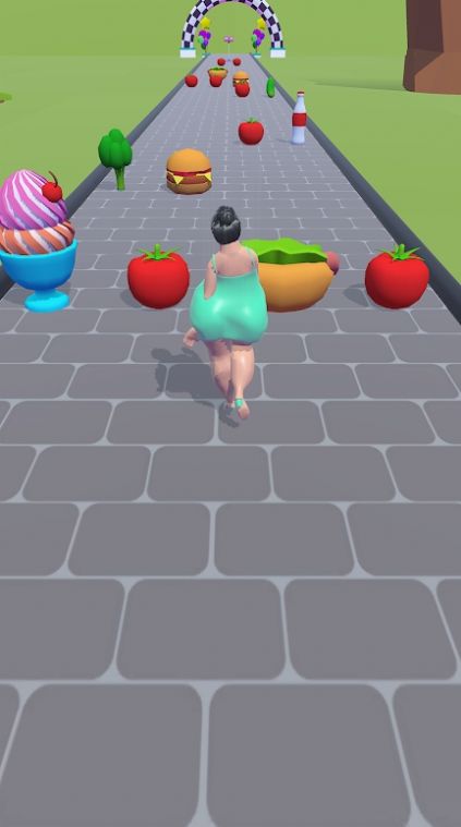 2、玩家将控制一个胖乎乎的女孩在装满食物的跑道上奔跑。