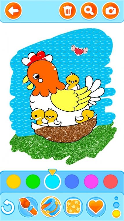 1、选择喜爱的农场动物线稿,点击或滑动屏幕为动物填充多彩的颜色;