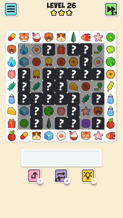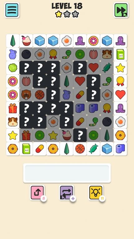 1、独特解谜元素,融合解谜与消除双重乐趣,需灵活运用策略进行瓷砖匹配;