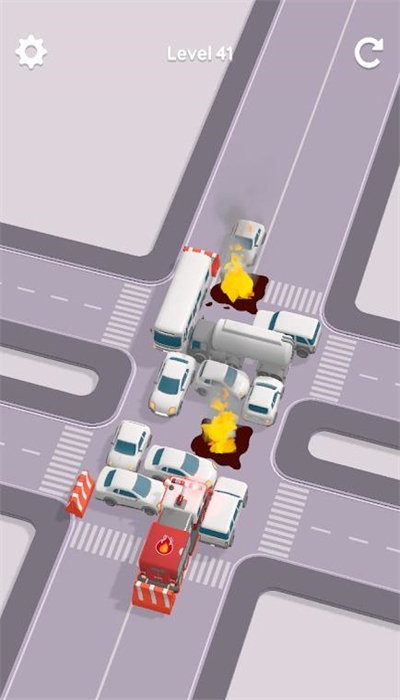 2、玩家需要将所有的从车辆都指挥控制到停车线里面,恢复交通的顺畅