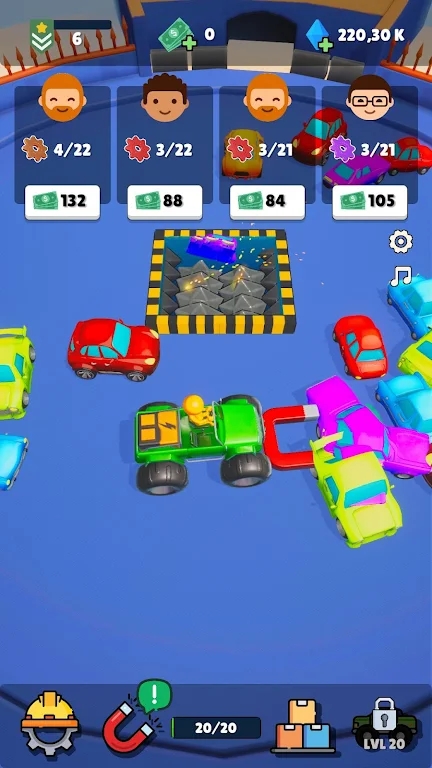 3、玩家需要操作机器快速粉碎这些车辆来获得利润,通过利润的积累去解锁更多种类的车辆。