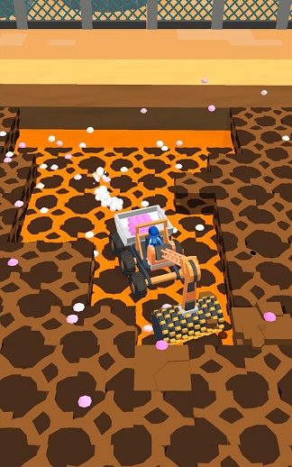 1、游戏的玩法非常的解压,在这里驾驶挖掘机在地图上肆意的挖掘探索地图中的资源。