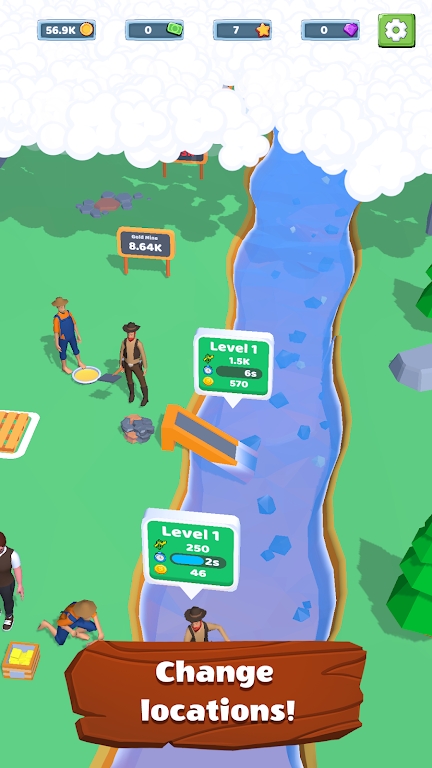 狂热淘金大亨是一款非常优质的手机狂热淘金游戏,在这款游戏中玩家们能够在河道旁建造自己的淘金机器,在这里感受到最趣味的经营玩法,游戏中你需要雇佣工人,购买机械设备来进行挖金子,在这里你需要对河床进行探索,顺利的采集金沙获取金币奖励,更多的进阶玩法等你前来体验。