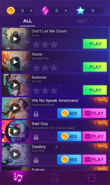 2、超多歌曲自由切换,一起完成享受全新的节奏闯关瞬间,独特的玩法思路不断的升级哦;