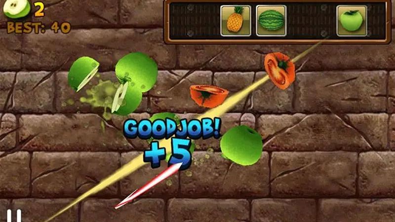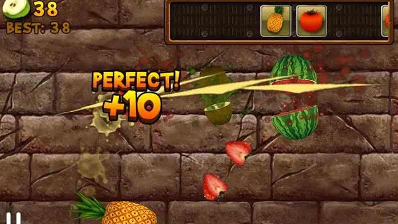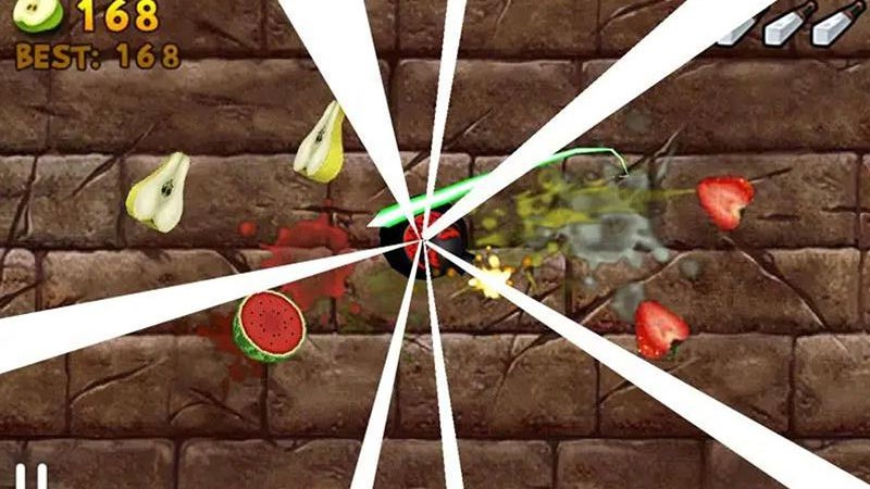 2、有一些炸弹色的坏水果,如果不小心切到它们会直接扣除分数,所以要尽量避免它们。