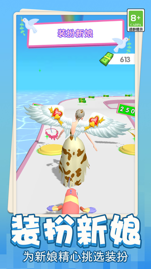 2、游戏中,玩家扮演新娘公主,在奔跑中收集并更换婚纱等美丽服饰;