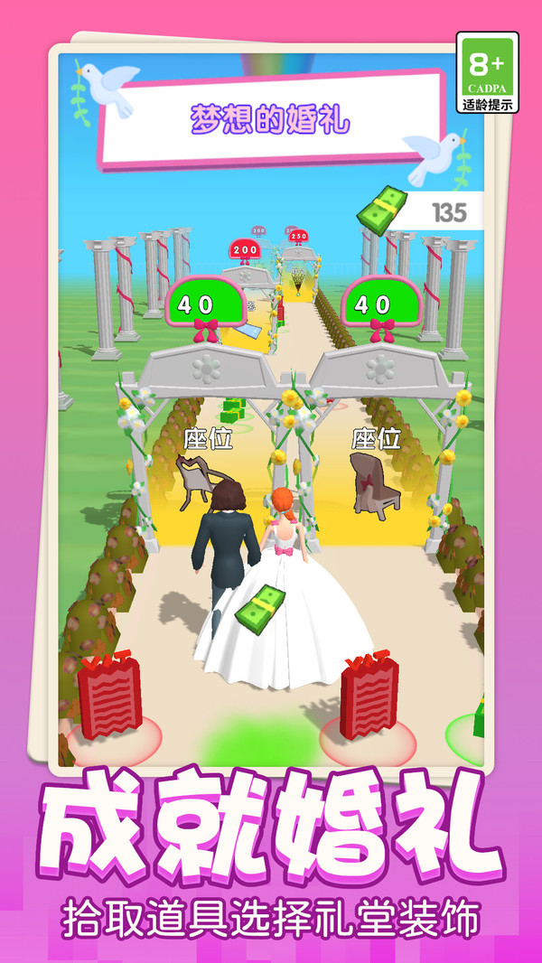3、赛道障碍设计,融入婚礼主题元素,公主需灵活应对各种趣味关卡挑战。