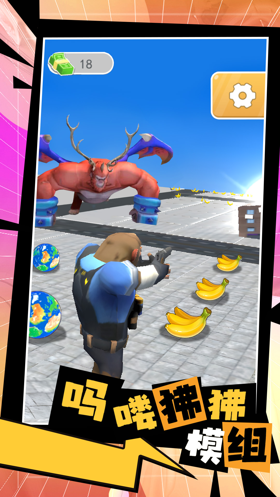 1、游戏角色设定新颖有趣,极具特色的吗喽狒狒为跑酷玩法注入活力;