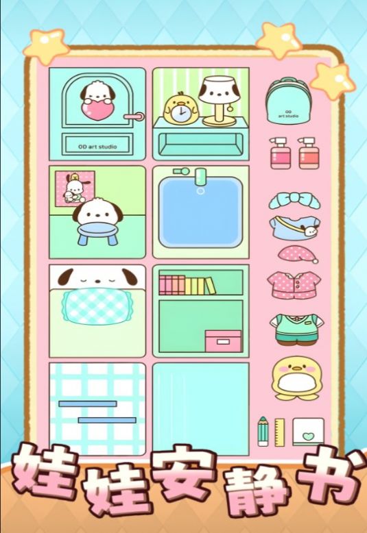 娃娃安静书是一款diy游戏,玩家可以根据自己的喜好来装扮娃娃书,操作容易好上手,这里的贴纸素材也是相当丰富好玩的,玩可以感受到许多有趣的内容,喜欢装扮游戏的玩家不要错过了,游戏内的场景都是设计的非常的精美好看的,还有治愈的游戏音乐很解压,赶紧来试试吧。