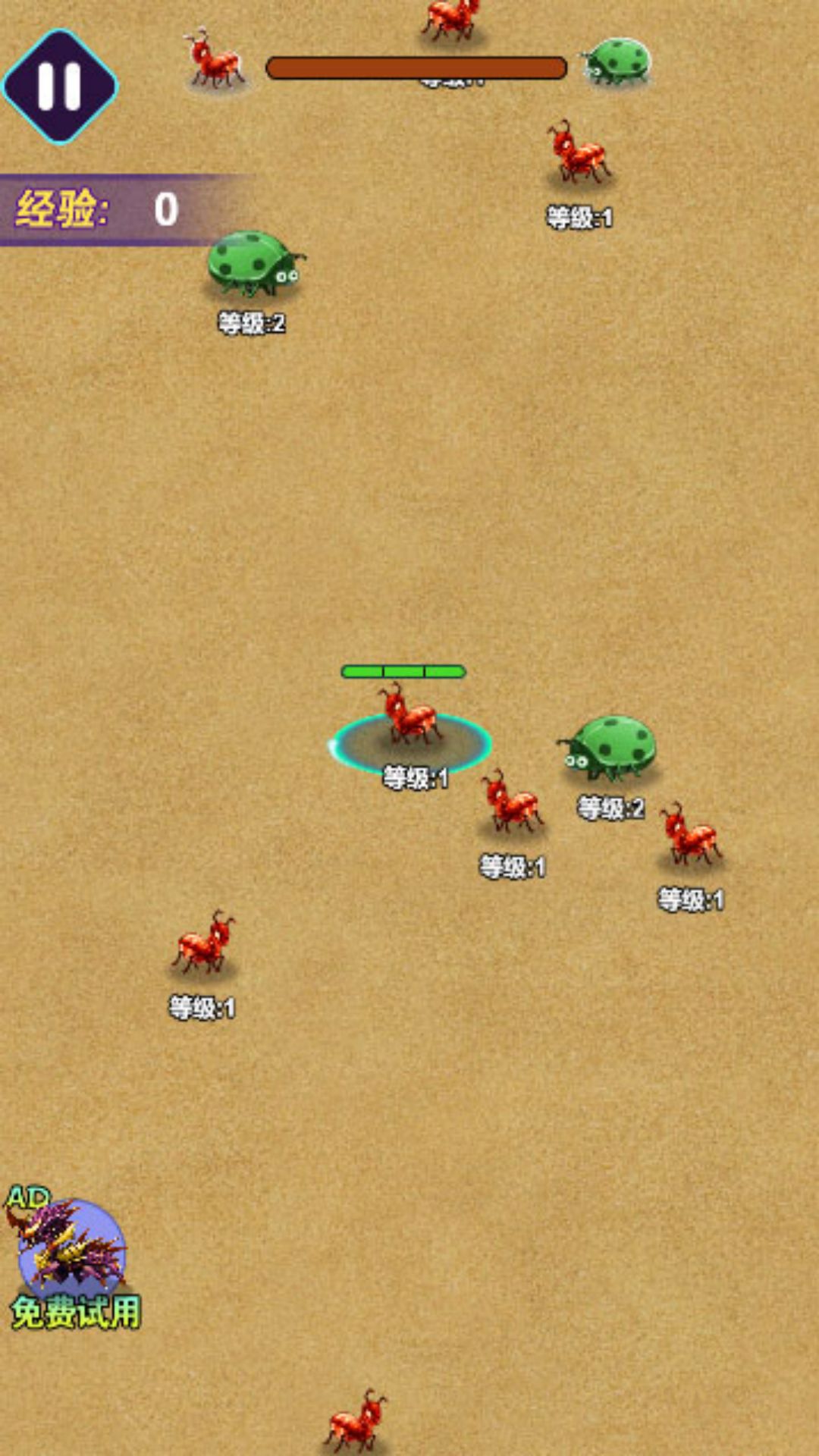 1、创建自己的蚂蚁大军,成为竞技场上最伟大的冠军。
