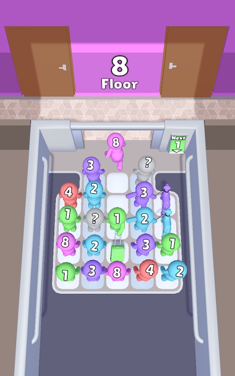 电梯排队是一款简单好上手的游戏,游戏过程非常有趣,游戏主题就是帮助每个乘客有序的进出电梯,玩家需要根据乘客的人数来控制好电梯的开关门时间不能让乘客等候太久失去耐心,操作非常的轻松好上手,没什么难度,让每个玩家都是可以很快的感受游戏所带来的乐趣,快来下载体验排序游戏的乐趣吧。