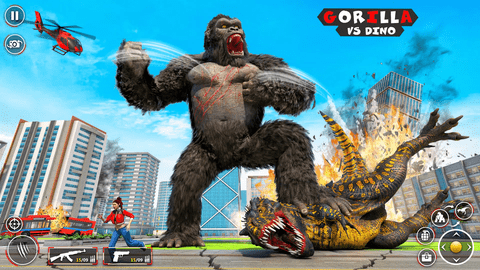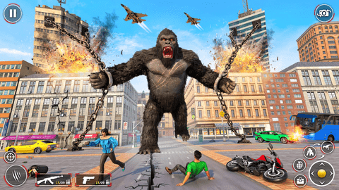 大猩猩城进攻金刚是一款非常好玩的怪物对战题材游戏,在这款游戏中玩家们要扮演巨物大猩猩在线进行对战体验,游戏中玩家们要击败各种的邪恶恐龙,抵挡人类的进攻,在这里你能够依靠你庞大的身躯击败他们,更多的对战任务等你来挑战。