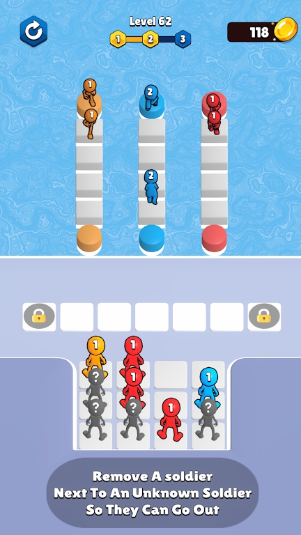 2、看清关卡中所有可见元素,包括障碍、小人和出发点等;
