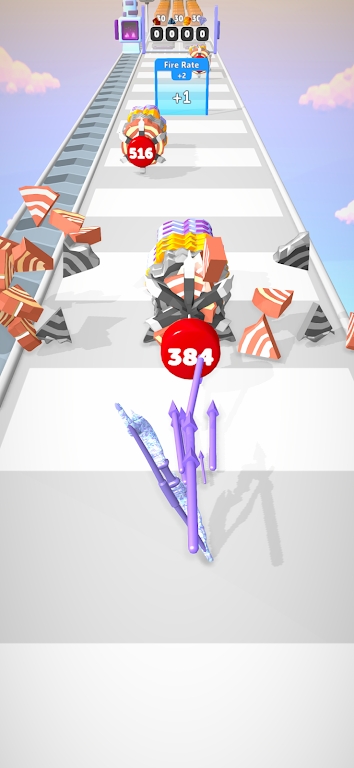 1、武器升级跑有海量关卡,随着难度的提升,路上的敌人也会变强。