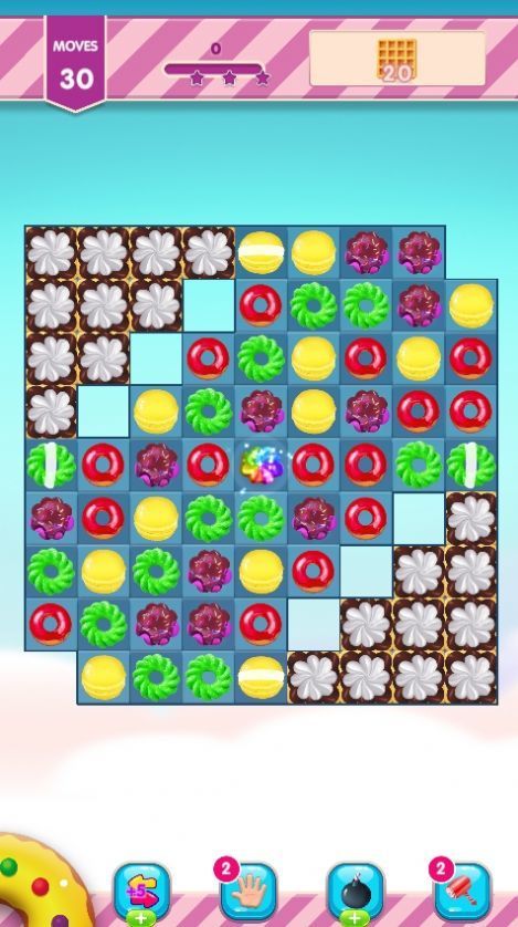 2、玩家需要相同的甜甜圈移动在一起,三个或者三个以上就可以去进行消除。