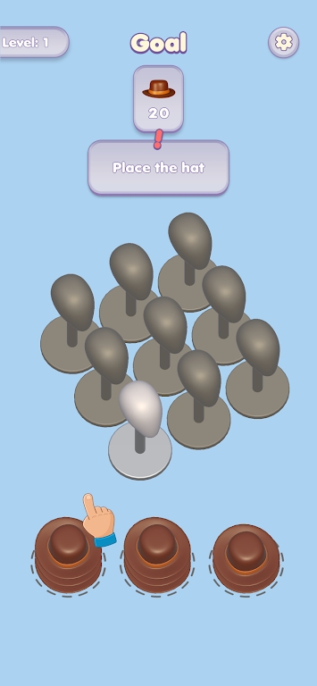 1、操作简单,点击帽子可以互相进行交换帽子,这里有着初级到高级的难度。