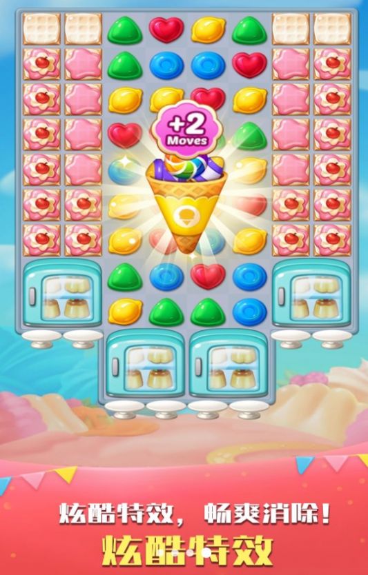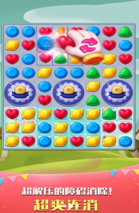 1、绚丽卡通风界面设计,可爱角色与丰富元素为三消增添更多乐趣;