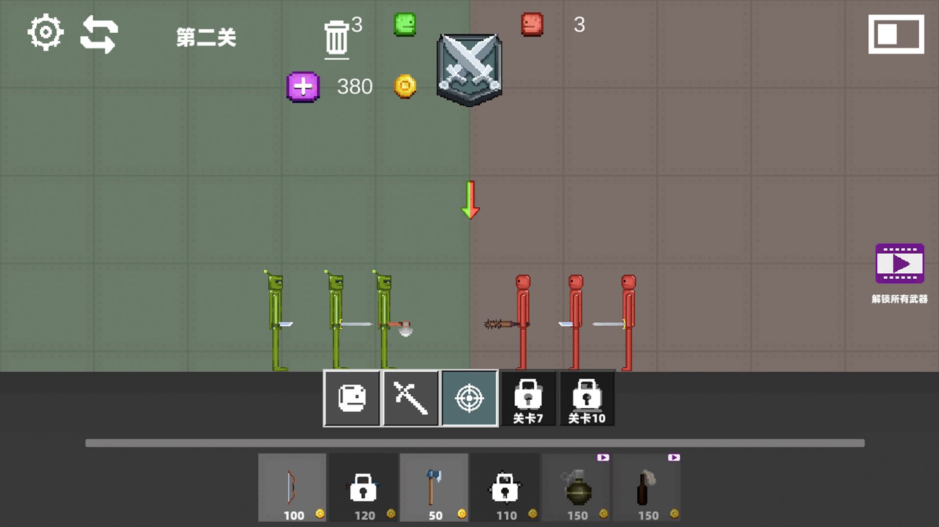 1、在闯关的过程中可以收集更多的金币来购买各种道具,提升战斗力。
