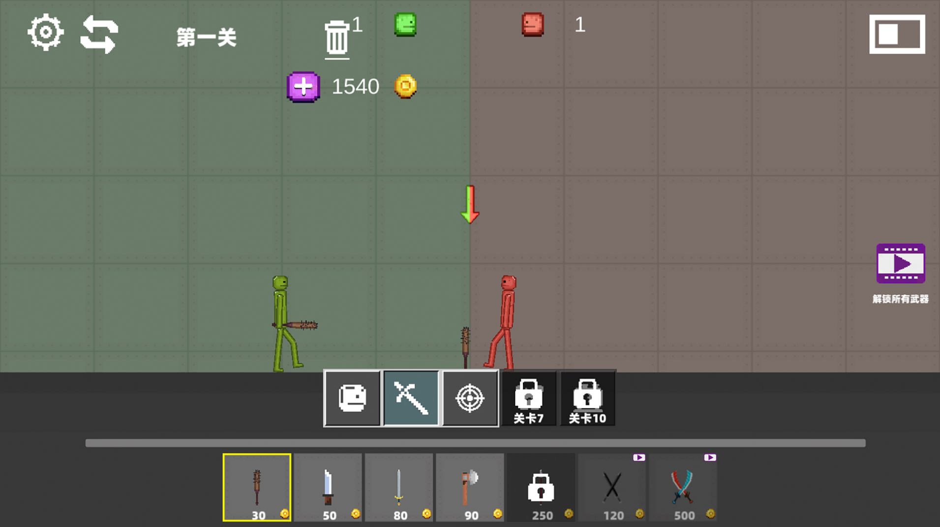 1、体验不一样的对战,控制各种不同类型的火柴人开启热血对决。