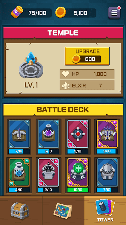 3、游戏中你能够提升自己的防御塔等级,提前熟悉关卡的怪物来携带你的防御卡片。