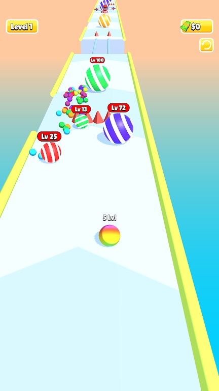 1)混乱刺激的画面带来前所未有的游戏体验,让你身临其境感受弹球赛跑的激情。