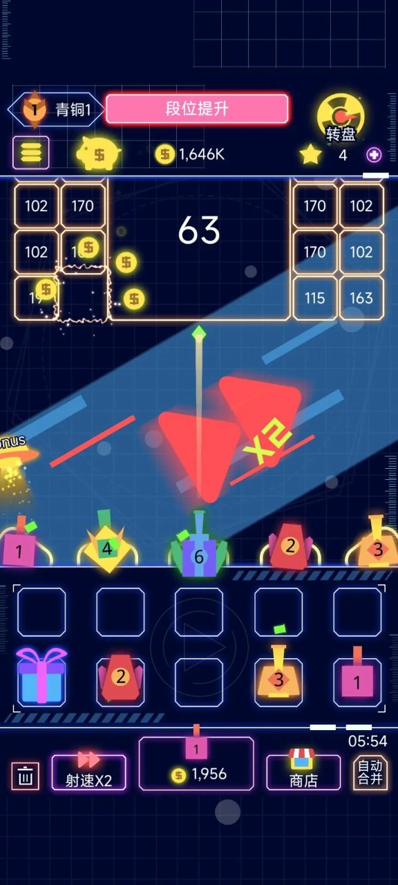 2、还能借助相同数字的炮台,不断合成更高的等级,展现强大攻击力的同时。