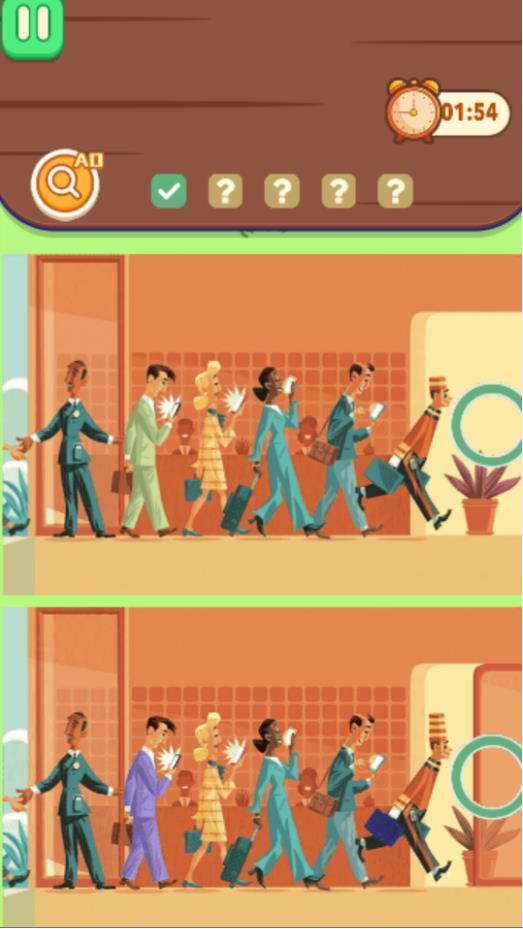 1、眼力找不同,一起来解压,没有什么的难度,随时可以玩;