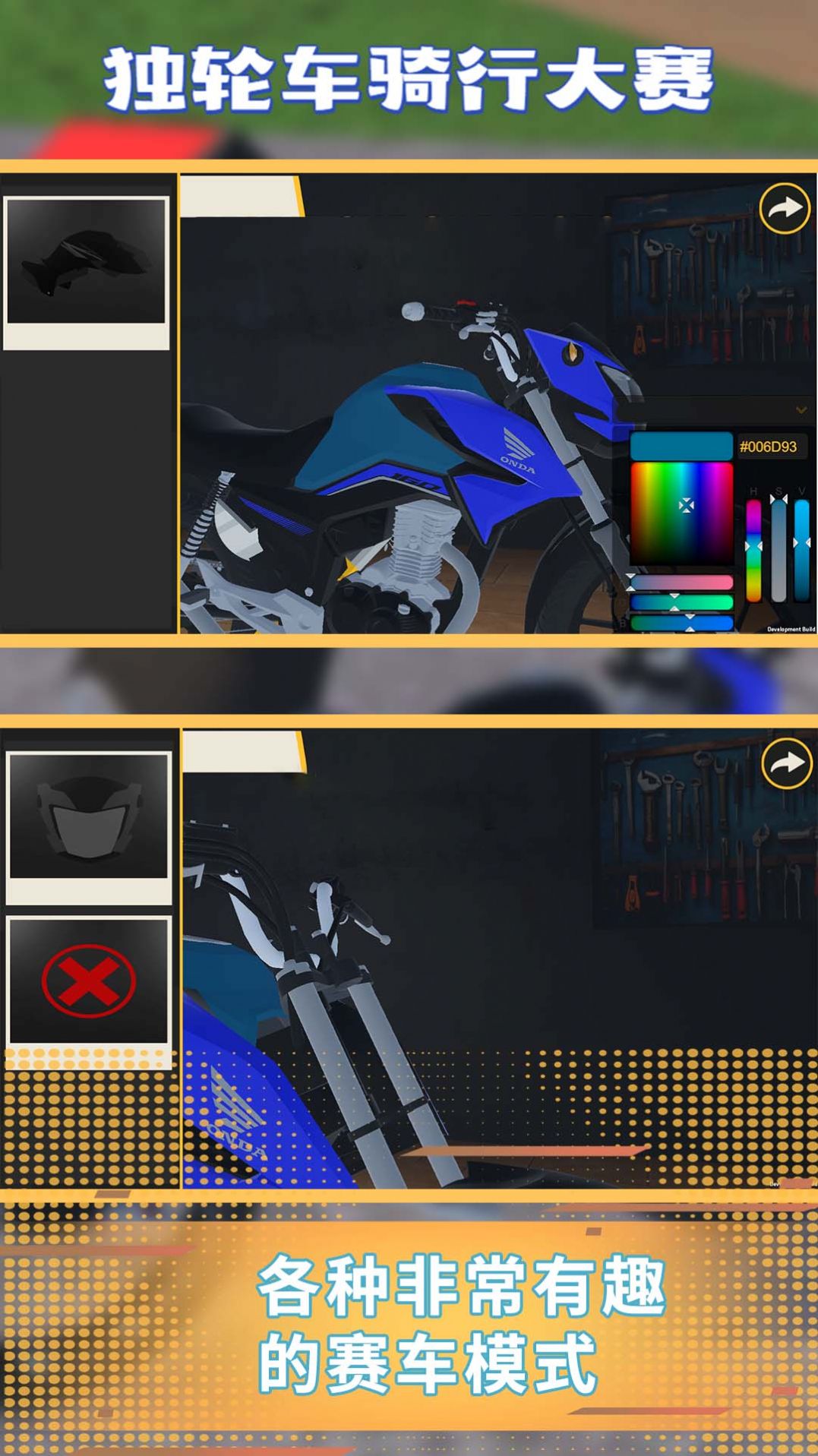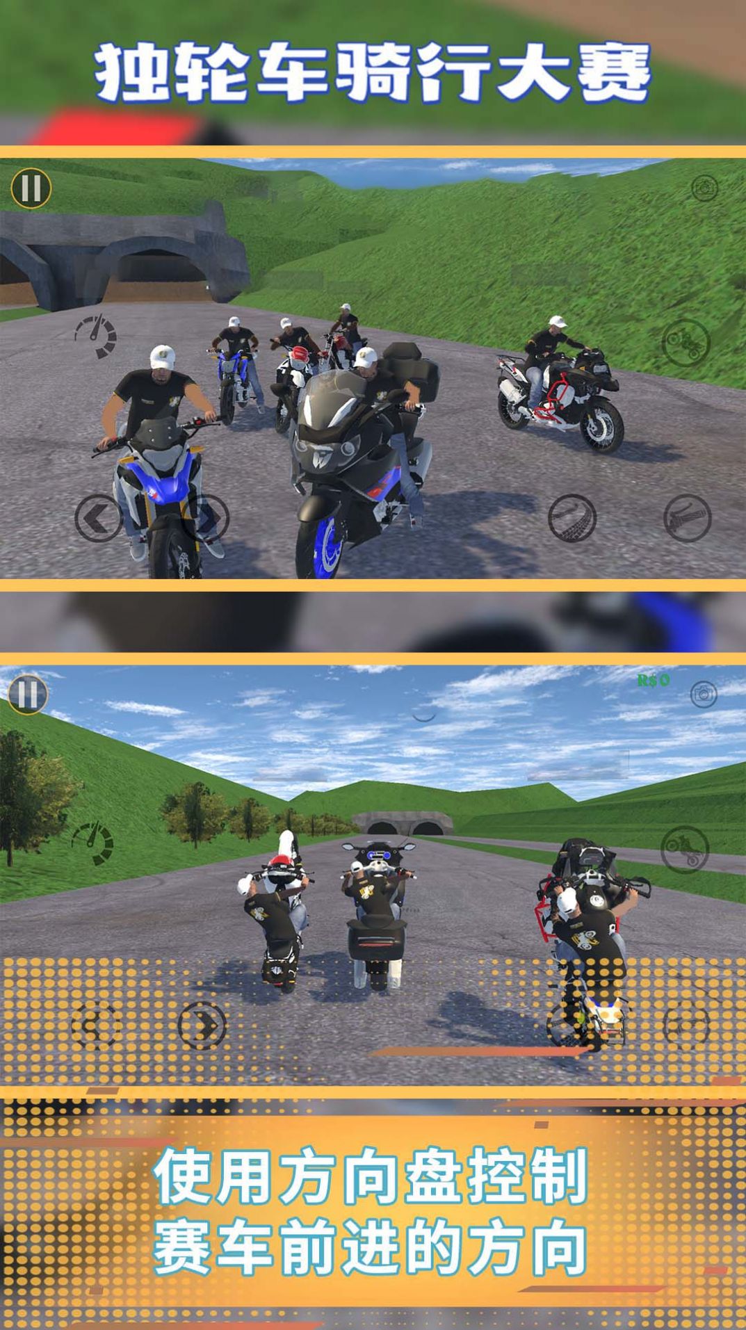 独轮车骑行大赛是一款摩托车竞速游戏,玩家需要在游戏内驾驶不同的摩托车开启各种精彩的战斗任务,游戏内的道路上充满了许多刺激的玩法,在这里开启极限的对决,你需要不断的提高自己的操作技术还有平衡感来完成不同的赛道,这里有着独树一帜的驾驶玩法,带来不同的乐趣。