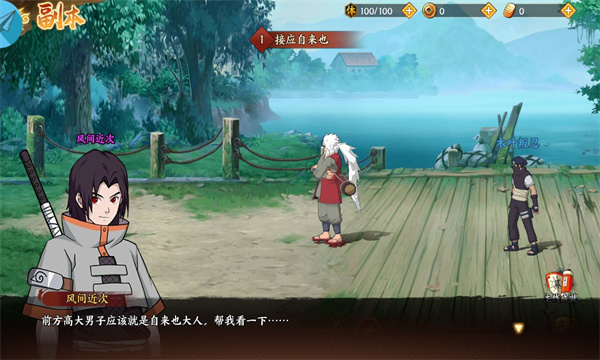 1、主线任务推进剧情发展,挑战强大的敌对忍者,收集资源提升角色属性与技能等级;