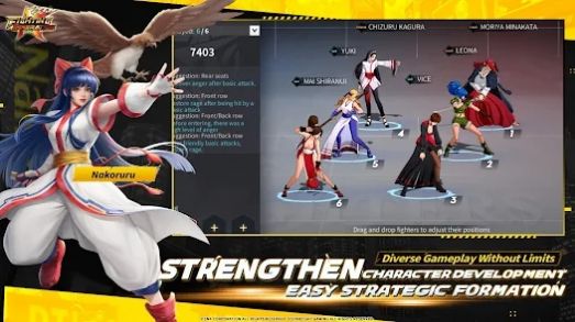SNK格斗一代是一款卡牌养成游戏,你需要选择喜欢的角色开进行战斗,帮助自己的卡牌养成获得更多的技能,提升它们的战斗力,成为最强的拳皇,打败所有对手,多种模式,让玩家的选择更多,可以感受到不也一样的游戏内容体验,游戏内的地图场景很多,玩家可以在不同的场景内决斗。
