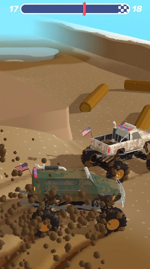 1、避开可怕的泥坑,一旦陷入,一切就结束了。赢取胜利、赚取金钱,升级你的座驾吧!