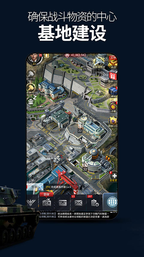 军团之争隐秘冲突是一款非常好玩的手机战争题材游戏,在这款游戏中玩家们要扮演军队的指挥官,在这里你要打造一个战无不胜的现代军队,游戏中你要开采周边的资源,获取建造所需的材料,建造你的指挥所等,提升自己科技等级,打造你的军队,海陆空三军的战斗都能够在这里进行,赶快体验吧。