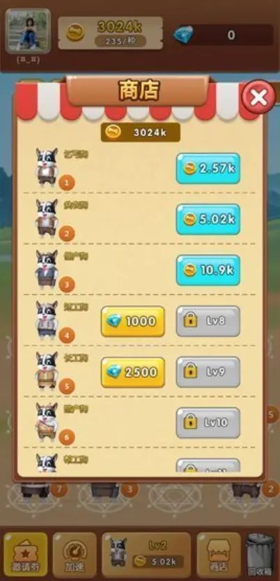 3.只需要玩家合成更高级的狗狗,就可以得到更多的金币,让玩家来购买更多的道具。
