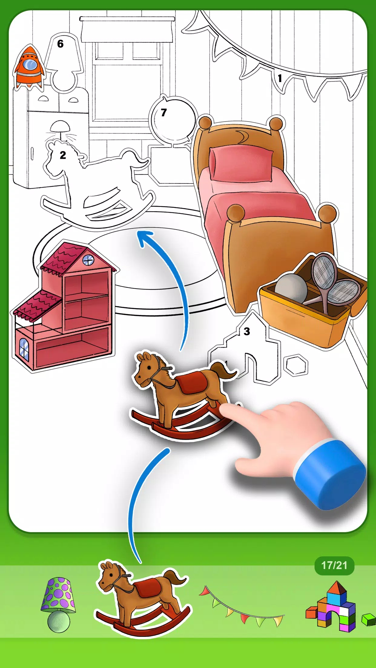 1、精美的画风多样,游戏整体玩法比较简单。你只需要找到图片中缺失的部分即可完成它们;