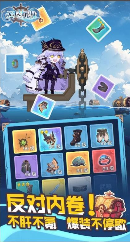 无尽航海宝藏传说是一款RPG游戏,这里采用了二次元主题,玩家在游戏内扮演船长,需要带领自己的队员完成各种航海冒险任务,成为航海王最强大的军团,游戏内有着许多很有创意的冒险玩法,精美的二次元画风带来很好的视觉效果,这里的角色都是有着不同的属性的,非常的精彩好玩。