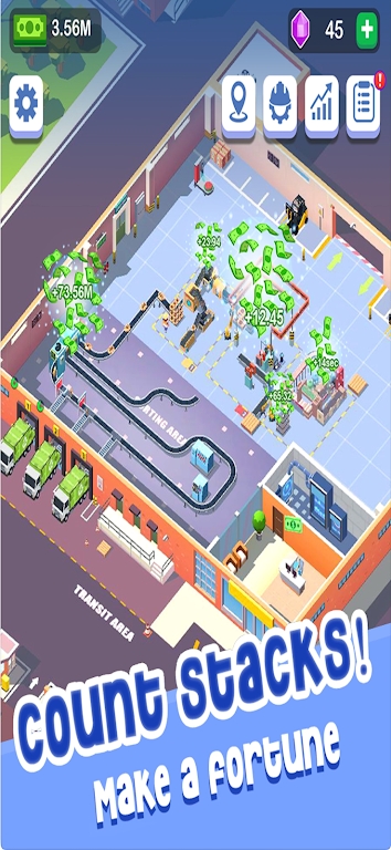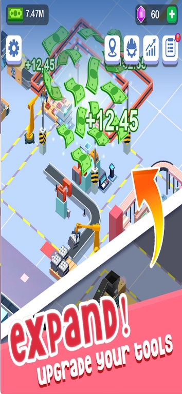 2、解锁更先进的设备并招募更多生产与运送工人,将我们的工厂持续做大做强!