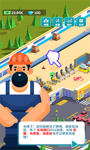 3、在这里你要开车那些经常偷懒的员工,还有各种的厂房建筑物等你打造。