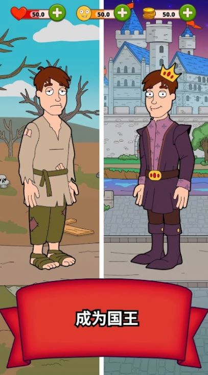 1、在这里你的选择会让你走向不同方向的人生道路,是变成乞丐还是当上国王都由你自己选择。
