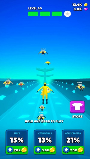 2.走进这个喷气挑战的世界,完成一次次的飞行,获得更高的得分提升自己的排名。