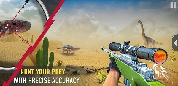 2、升级武器装备,解锁新的狙击点,通过智慧和勇气在恐龙横行的世界中生存下去。