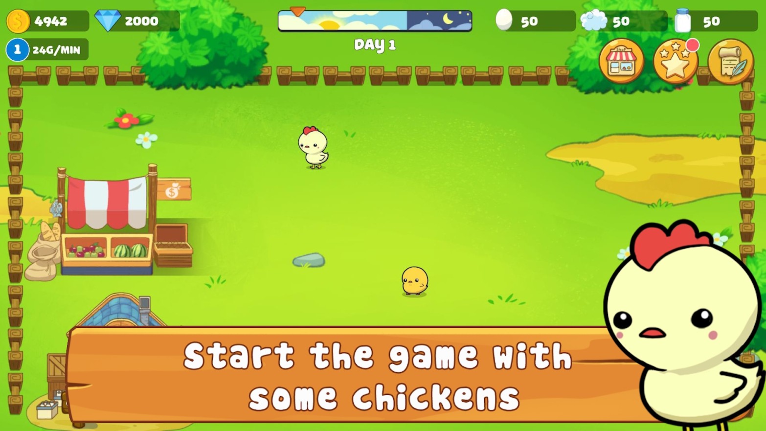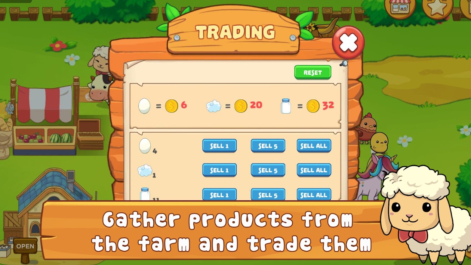 1、收集鸡蛋,羊毛和牛奶进行贸易,每日任务系统和有趣的挑战。