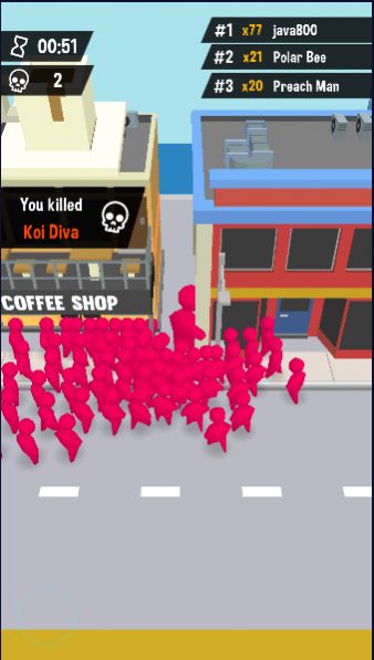 2、玩家在游戏中带领人群在繁华都市穿梭,通过不断吞噬壮大队伍力量;