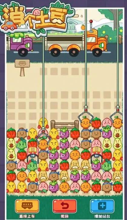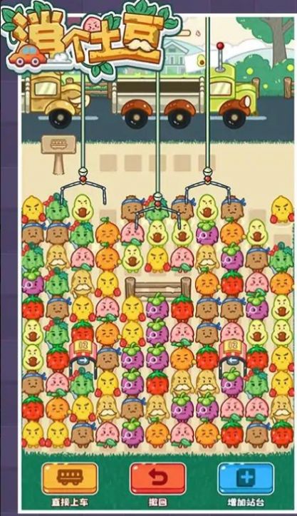 消个土豆是一款非常好玩的手机消除题材游戏,在这款游戏中玩家们要利用夹子来夹取不同的蔬菜,放到格子上进行三消,消除的水果就能够立马装车,在装满汽车之后就能够进行出售获得积分,游戏的创意设定,解压的游戏模式,吸引了一大批的忠实玩家,更多体验等你感受。