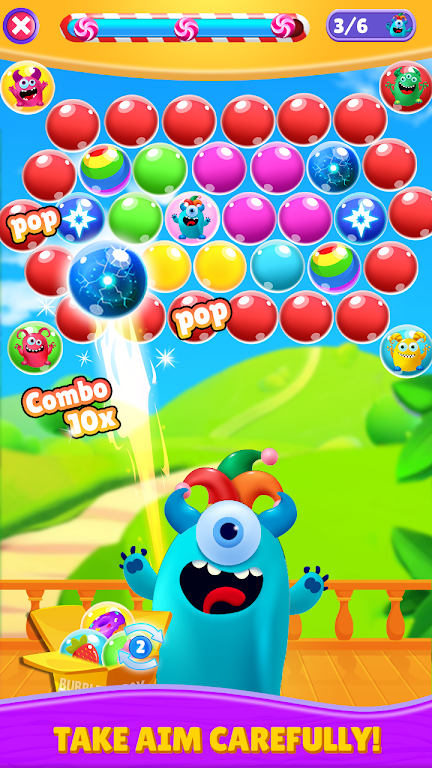 3、随着关卡的逐渐解锁,儿童将享受到愉快的爆破泡泡乐趣。