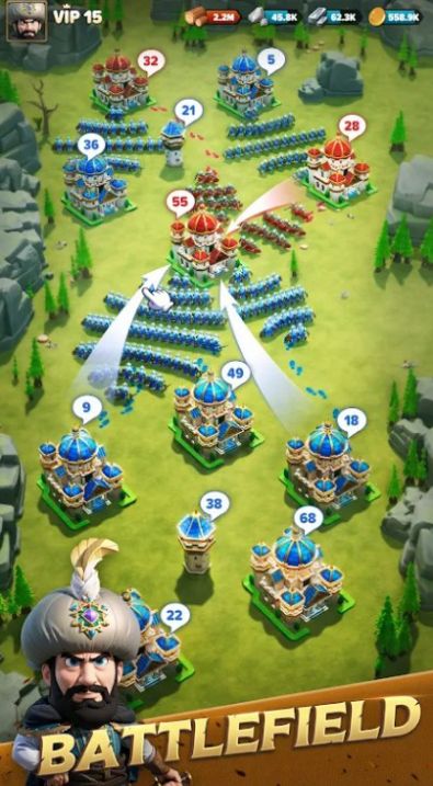 2、同时让玩家不断塑造战力强大的军队,让你在其中尽情的驰骋和自由的冒险。